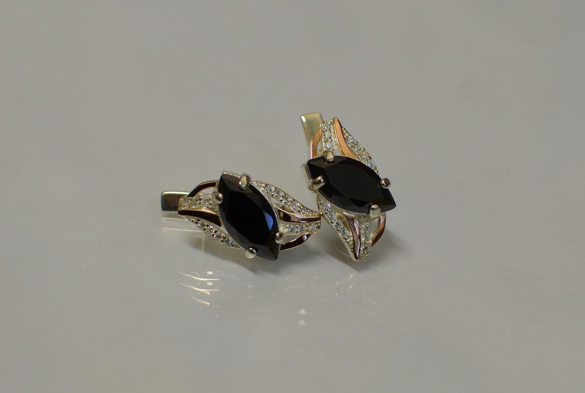 Описание Серебряные серьги Sil с золотыми пластинами 114s-13 Черный (Sil-845)