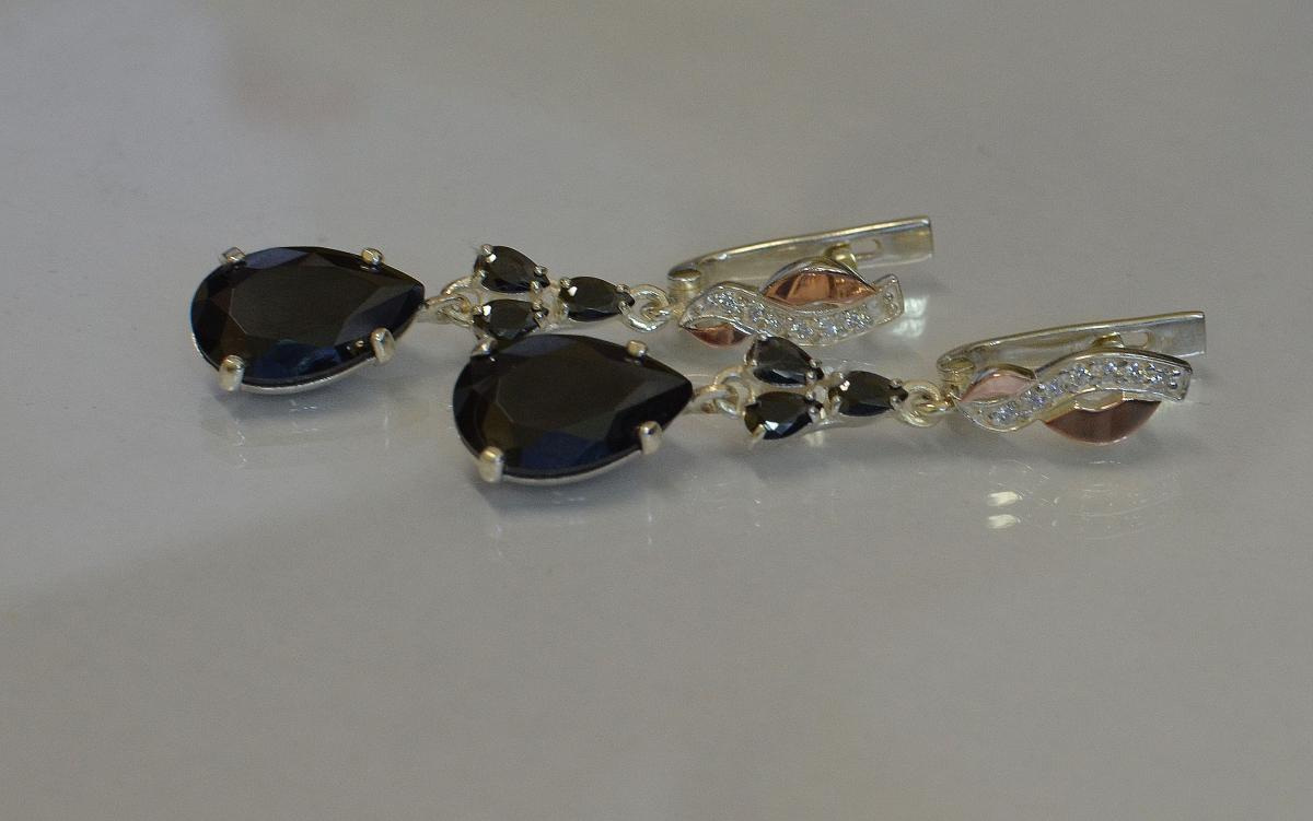 Описание Серьги серебрянные Sil Myau с золотыми пластинами и фианитами 099s-12 Черный (Sil-683)