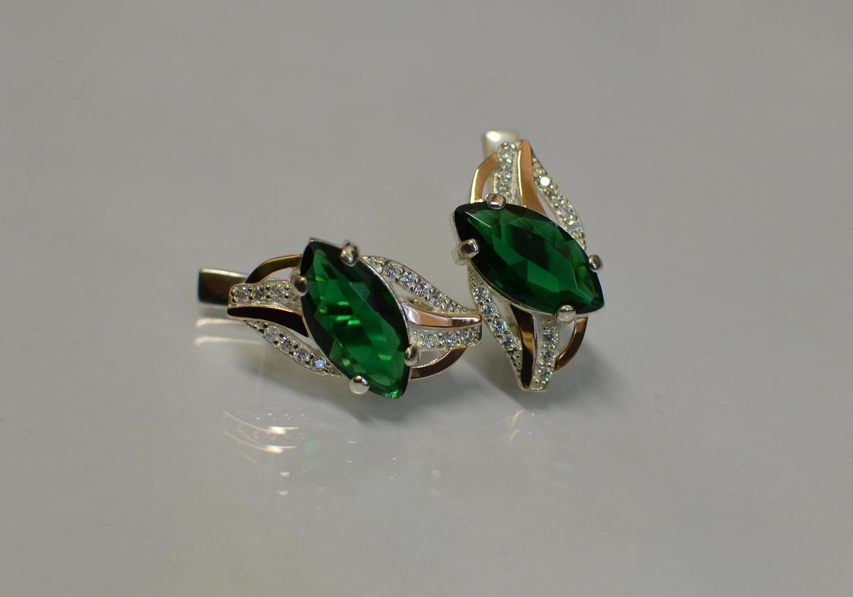 Описание Серебряные серьги Sil с золотыми пластинами 114s-6 Зеленый (Sil-838)
