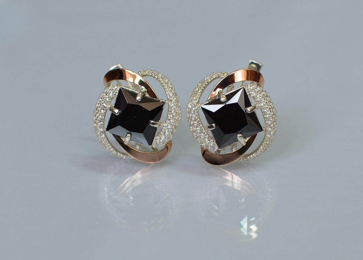 Описание Серебряные серьги Sil с золотыми накладками 130s-7 Черный (Sil-738)