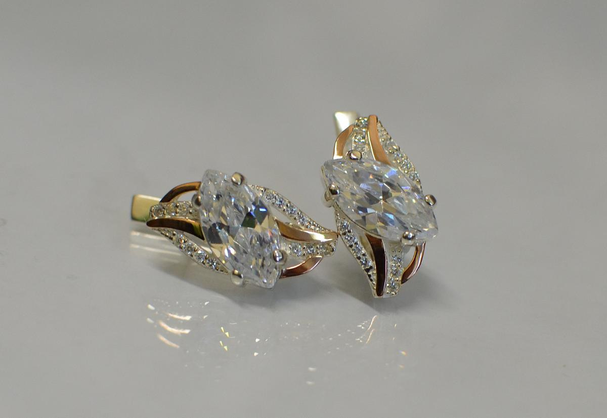 Описание Серебряные серьги Sil с золотыми пластинами 114s-3 Белый (Sil-835)