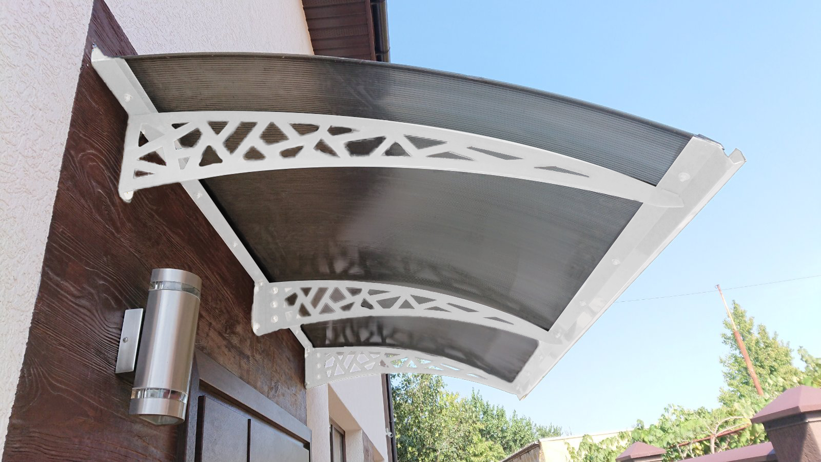 Описание Металический сборный навес (козырек) над дверью Dash`Ok 1.5x1 м Hi-tech, белый, сот 6 мм, бронза