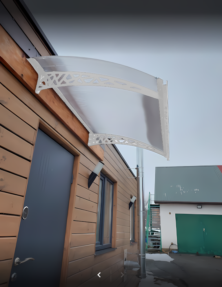 Изготовлен из высококачественного поликарбоната, этот навес является прочным и устойчивым к ультрафиолетовым лучам, что обеспечивает длительный срок службы без выгорания или повреждений. Поликарбонат также имеет высокую прозрачность, позволяя достаточно естественного света проникать к входу.