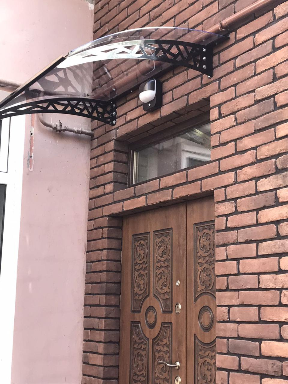 Готовый навес из поликарбоната над входом в здание Dash'Ok 1.5x1 м Стиль - это современный и стильный способ защитить ваш вход от непогоды и создать эстетически привлекательный образ вашего дома.