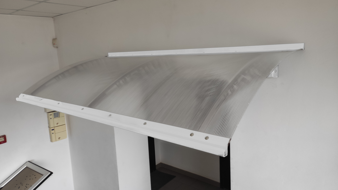 Металический сборный навес (козырек) над дверью Dash'Ok 2.05x1.5 м Hi-tech, белый, мон 3 мм, прозр