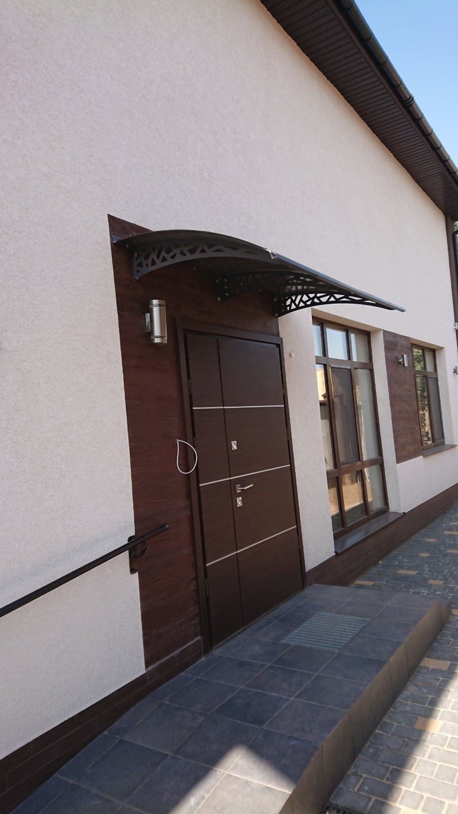 Готовый навес из поликарбоната над входом в здание Dash`Ok 2.05x1 м Стиль - это современный и стильный способ защитить ваш вход от непогоды и создать эстетически привлекательный образ вашего дома.