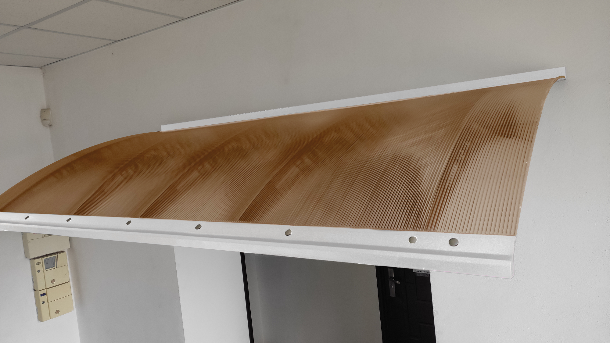 Описание Металический сборный навес (козырек) над дверью Dash`Ok 4,05x1 м Style, белый, сот 6 мм, бронза