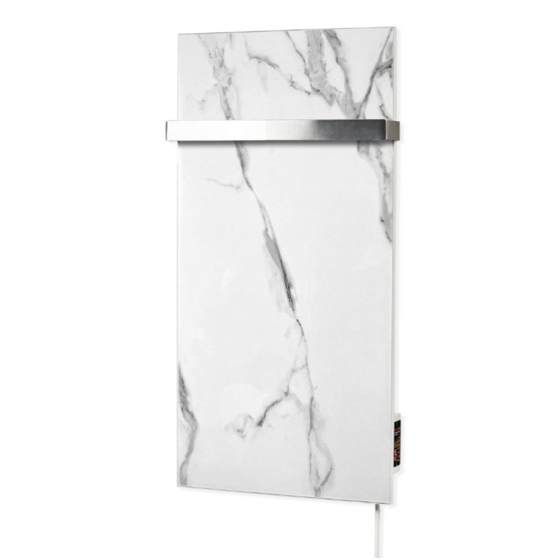 Характеристики товара Полотенцесушитель электрический FLYME 400 Вт 800x400 дизайнерский, белый камень