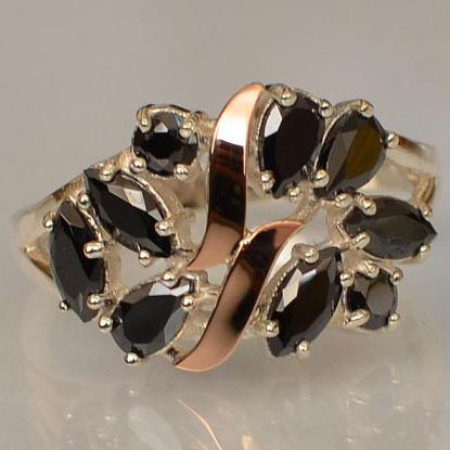Описание Серебряное кольцо Sil с золотыми вставками Черный (Sil-118)