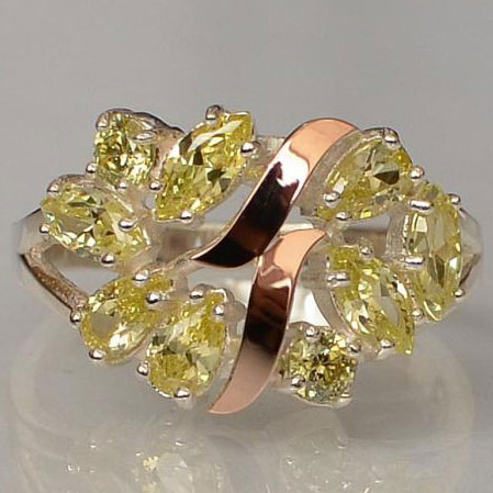 Серебряное кольцо Sil с золотыми вставками Желтый (Sil-122)