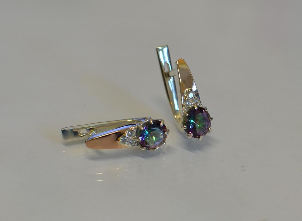 Описание Серебряные серьги Sil с золотыми вставками 124s-7 Мистик (Sil-780)