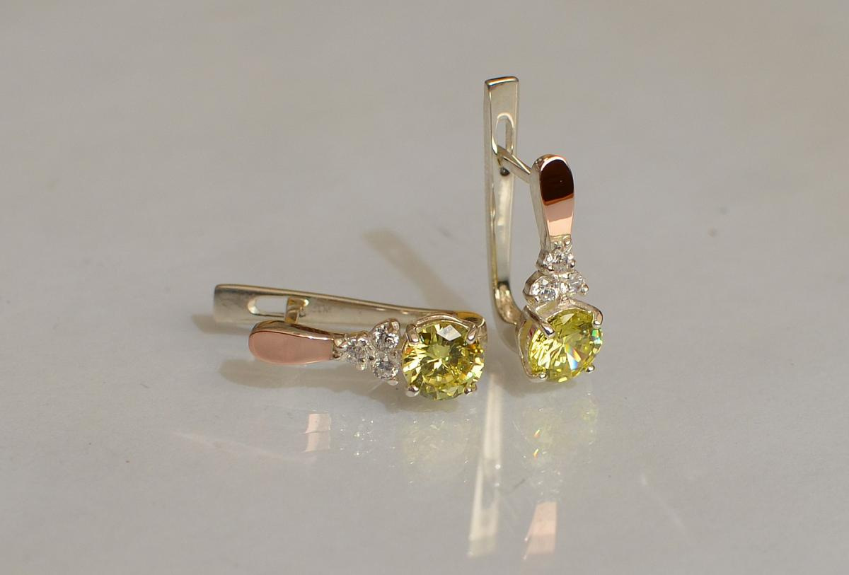 Описание Серебряные серьги Sil с золотом 140s-12 Желтый (Sil-700)