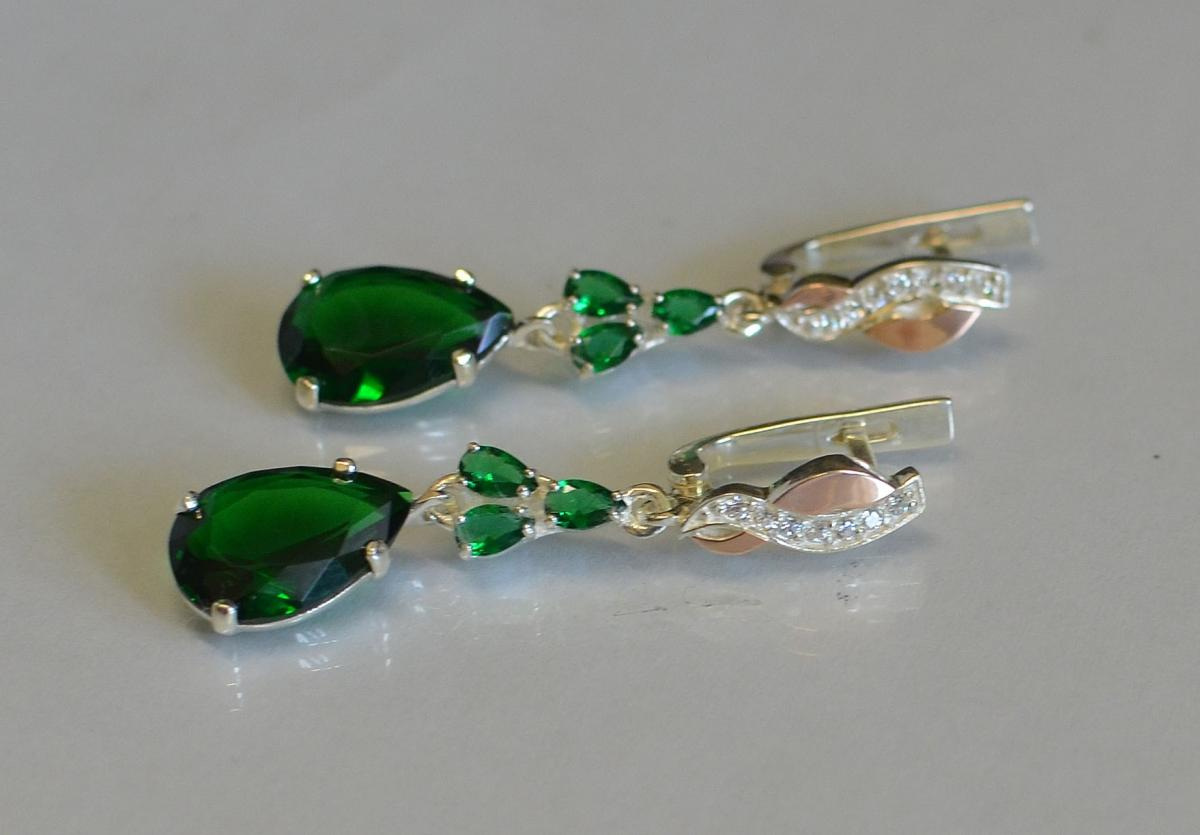 Серьги серебрянные Sil Myau с золотыми пластинами и фианитами 099s-5 Красный (Sil-677)