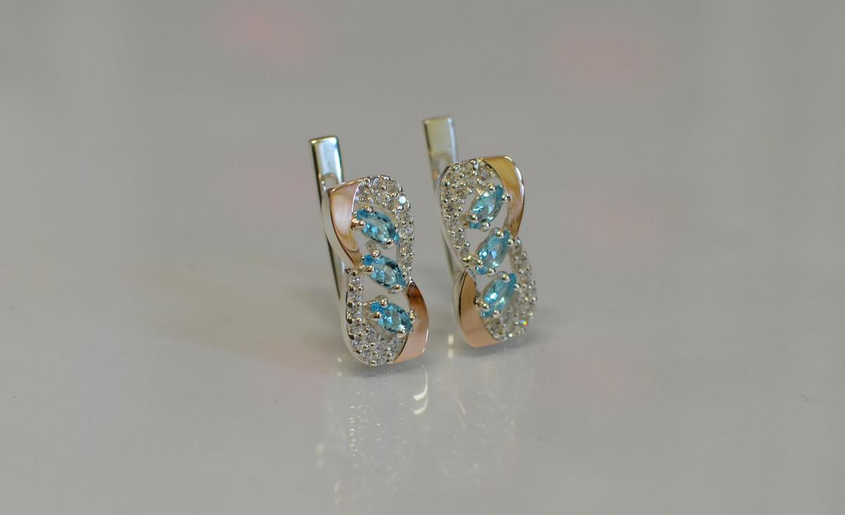 Серебряные серьги Sil с золотыми пластинами 120s-8 Желтый (Sil-806)