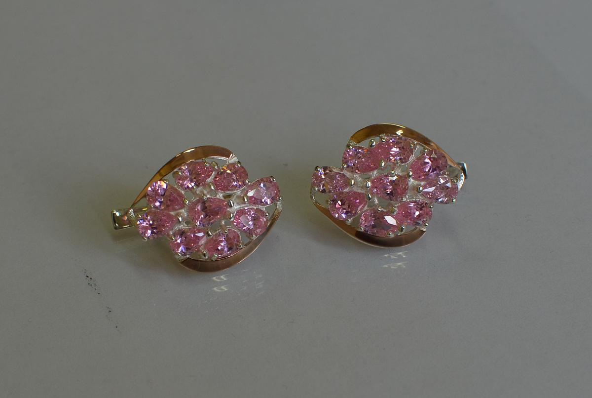 Серебряные серьги Sil с золотыми вставками 134s-9 Розовый (Sil-1196)