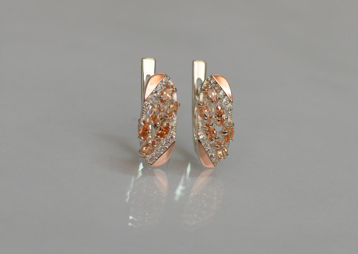 Описание Серебряные серьги Sil с золотыми пластинами 116s-4 Шампань (Sil-1254)