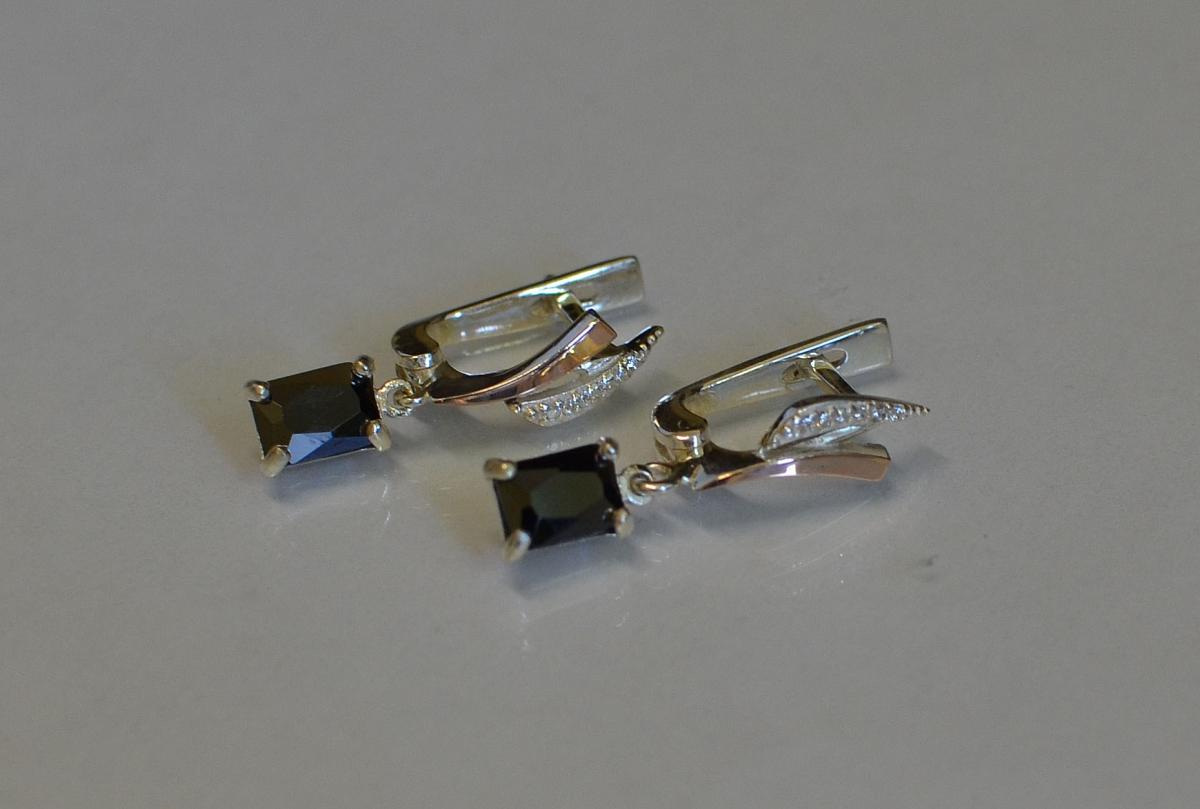 Серьги серебряные Sil с золотыми накладками и фианитами 100-5 Олива (Sil-992)