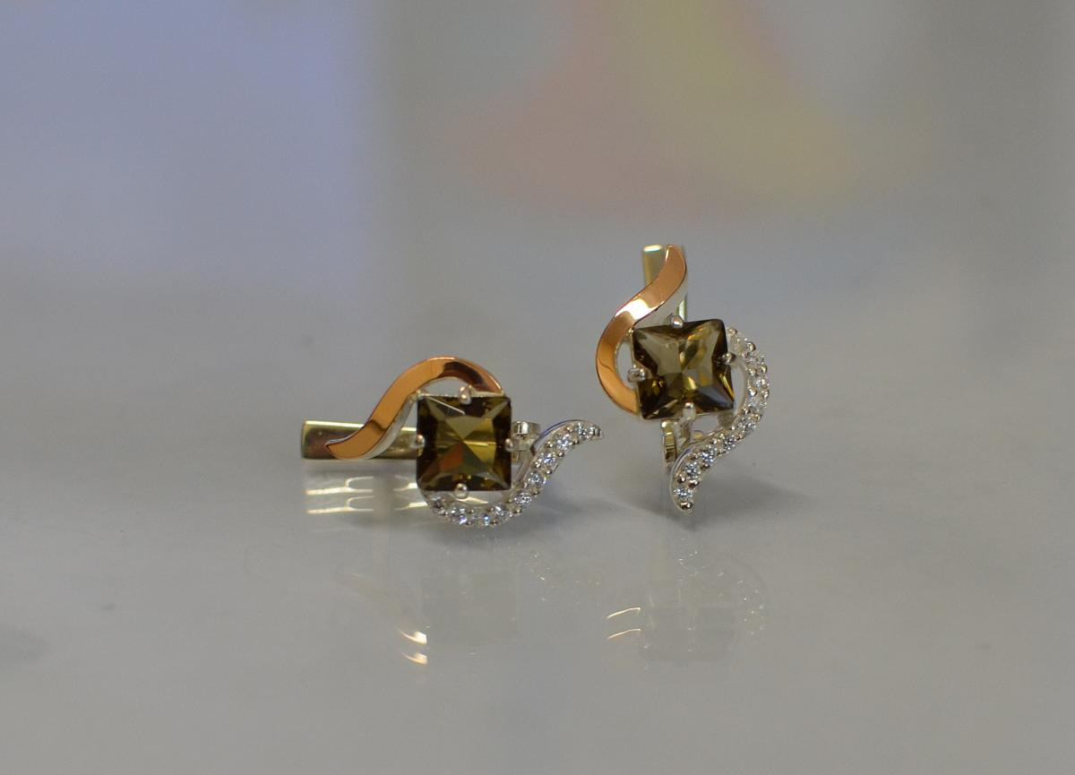 Описание Серебряные серьги Sil с золотыми накладками 118s-8 Коричневый (Sil-824)