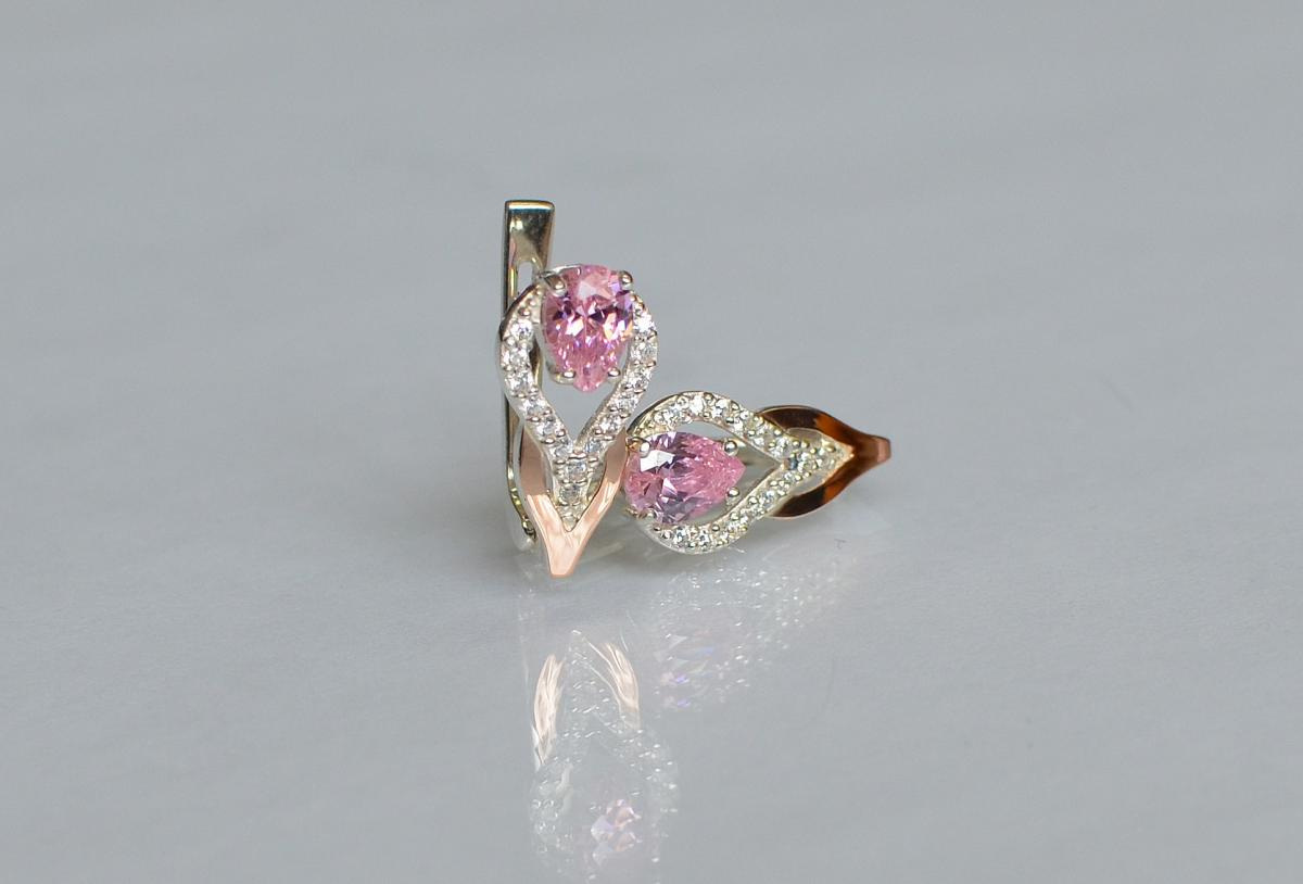 Серебряные серьги Sil с золотыми накладками 132s-9 Прозрачный (Sil-724)