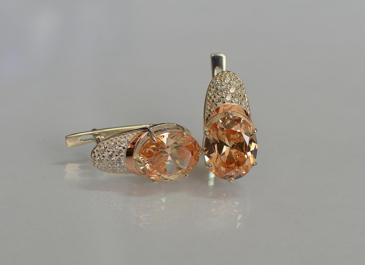 Серебряные серьги Sil с золотыми накладками 122s-8 Розовый (Sil-754)