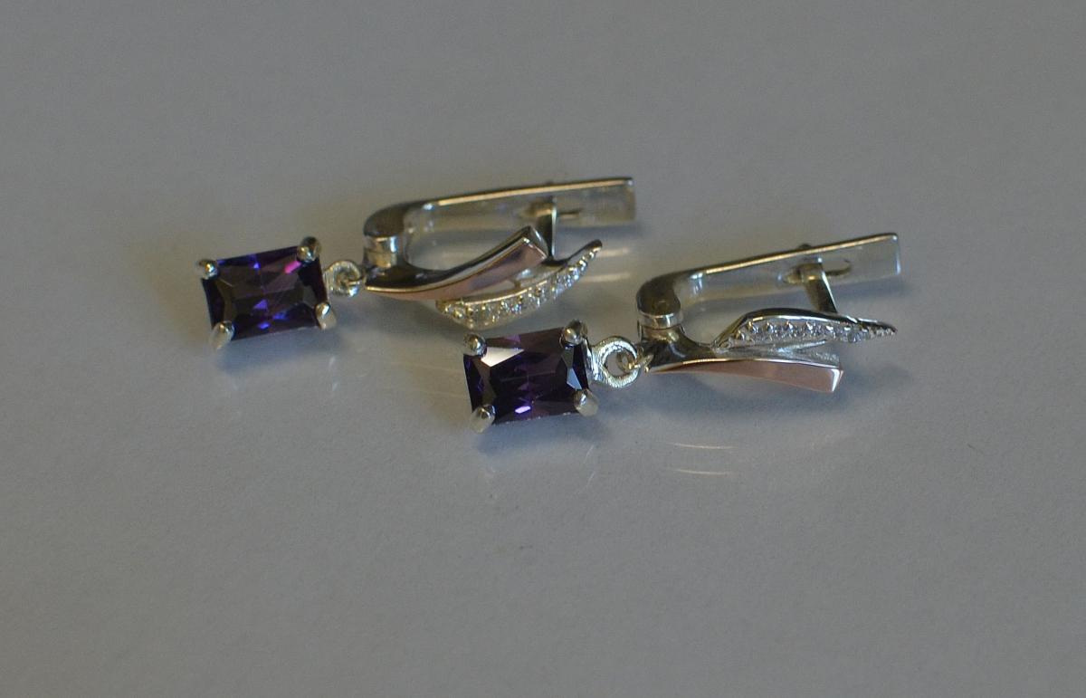 Серьги серебряные Sil с золотыми накладками и фианитами 100-2 Гранат (Sil-989)