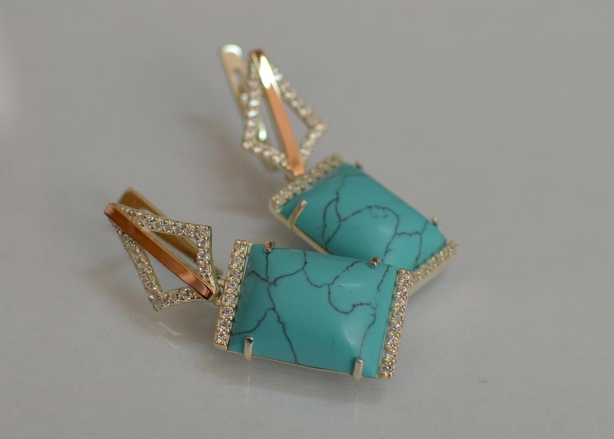 Характеристики товара Серебряные серьги Sil с кабашонами 146s-6 Бирюзовый (Sil-1151)