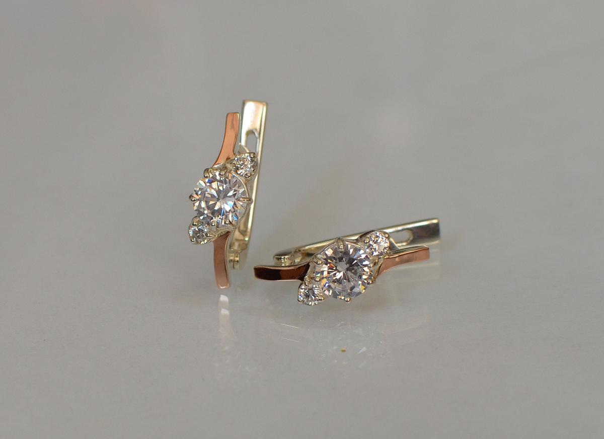Серебряные серьги Sil с золотыми вставками 134s-5 Шампань (Sil-1192)