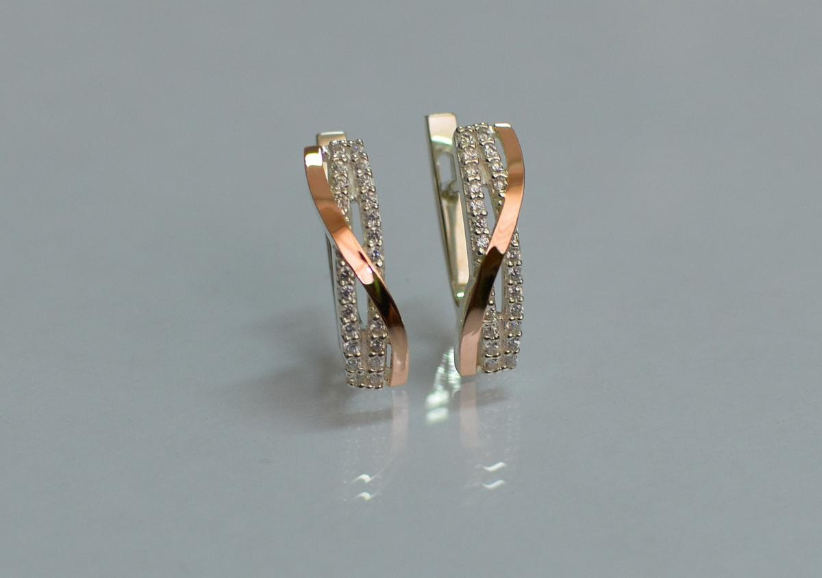 Серебряные серьги Sil с золотыми накладками 117s-7 Прозрачный (Sil-765)