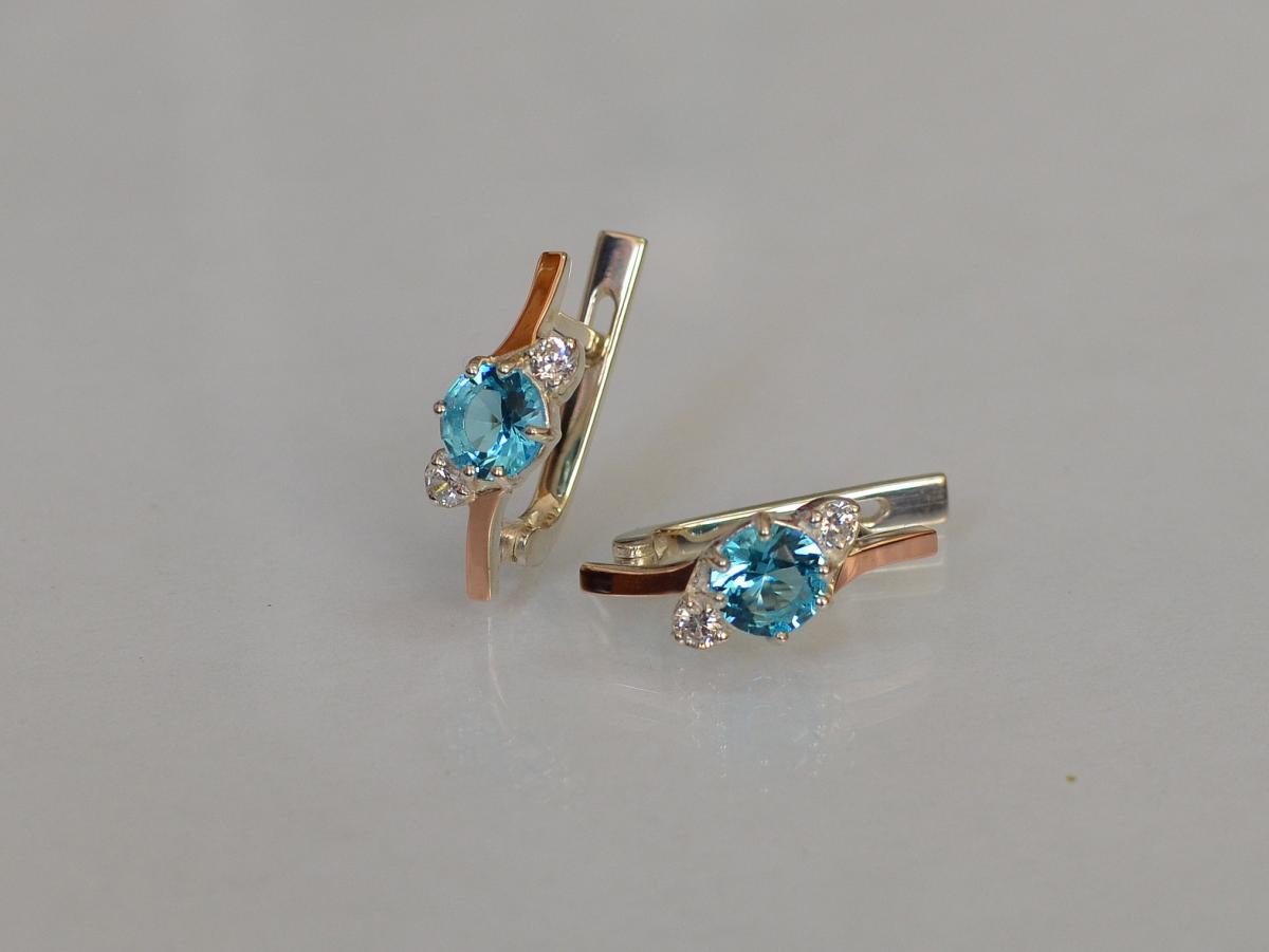 Серебряные серьги Sil с золотыми вставками 134s-5 Шампань (Sil-1192)