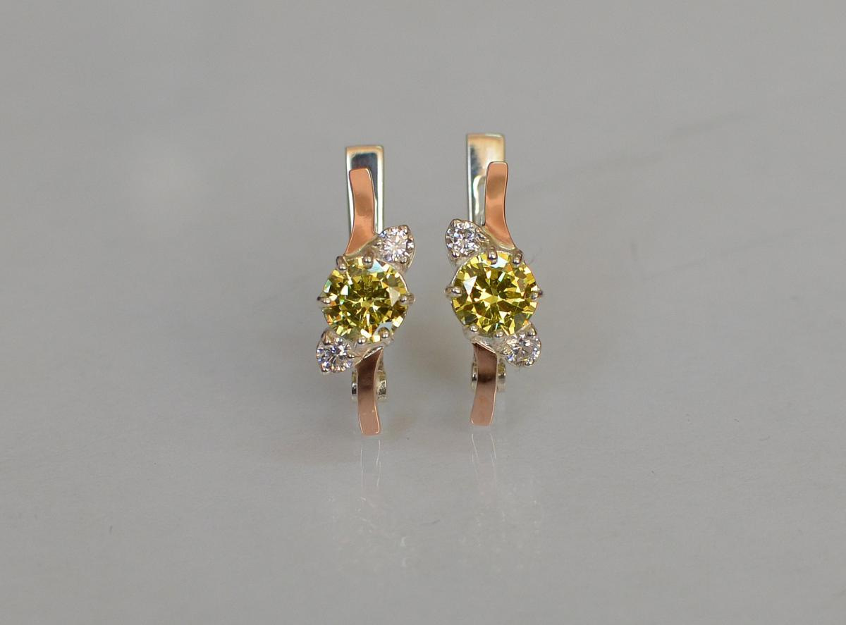 Серебряные серьги Sil с золотыми вставками 134s-5 Шампань (Sil-1192)