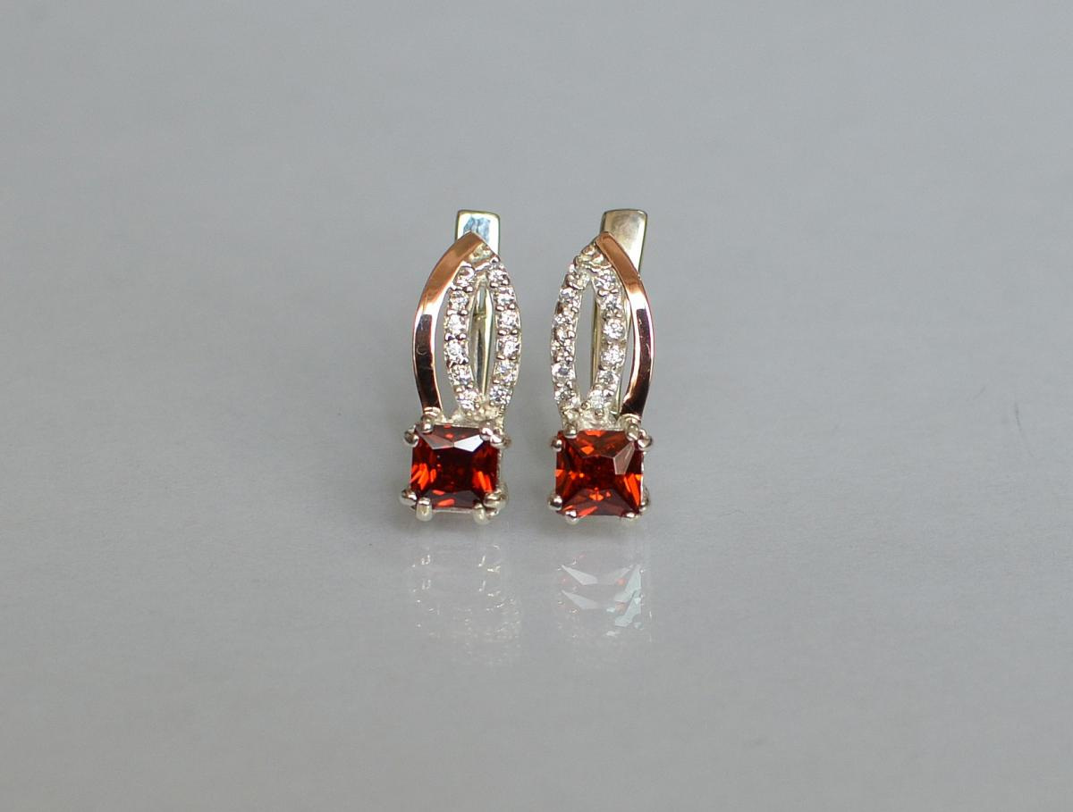 Серебряные серьги Sil с золотыми вставками 136s-2 Розовый (Sil-1236)