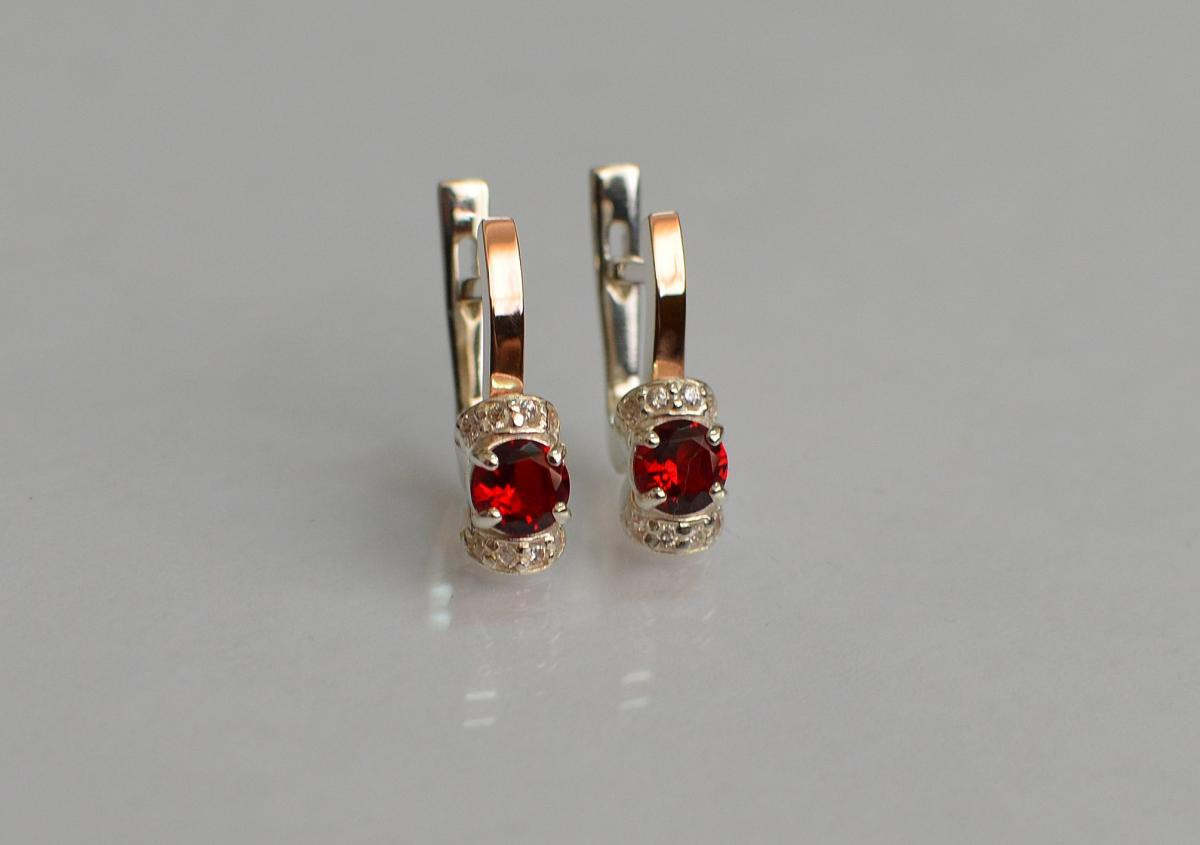 Описание Серебряные серьги Sil с золотом 137s-9 Красный (Sil-1227)