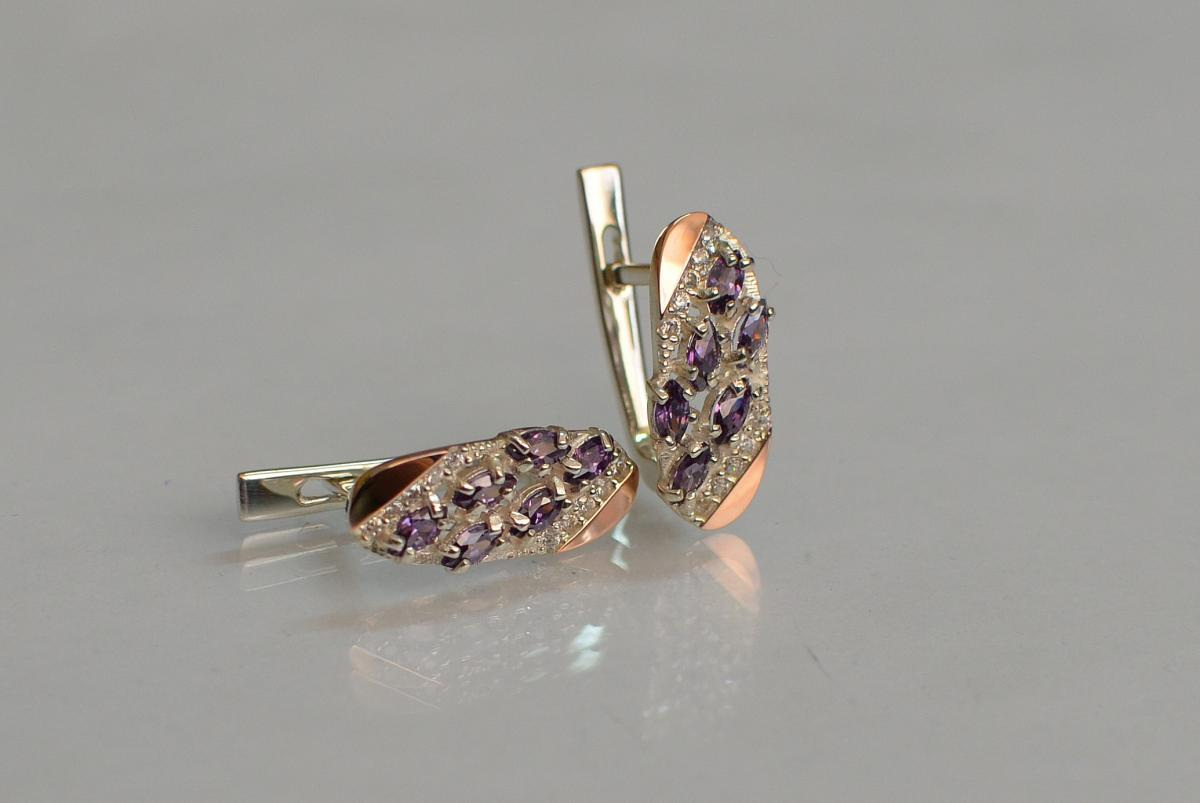 Описание Серебряные серьги Sil с золотыми пластинами 116s-9 Фиолет (Sil-1259)