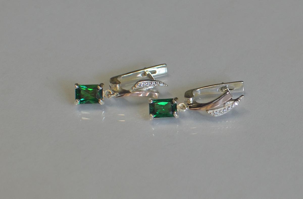 Серьги серебряные Sil с золотыми накладками и фианитами 100-5 Олива (Sil-992)