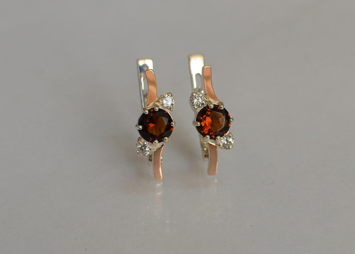 Серебряные серьги Sil с золотыми вставками 134s-5 Шампань (Sil-1192)