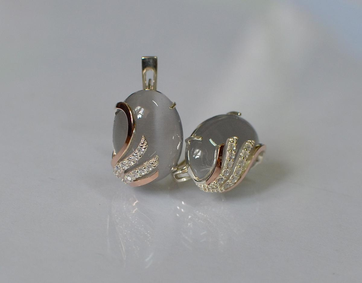 Описание Серьги из серебра Sil с золотом 149s-8 Серый (Sil-1107)