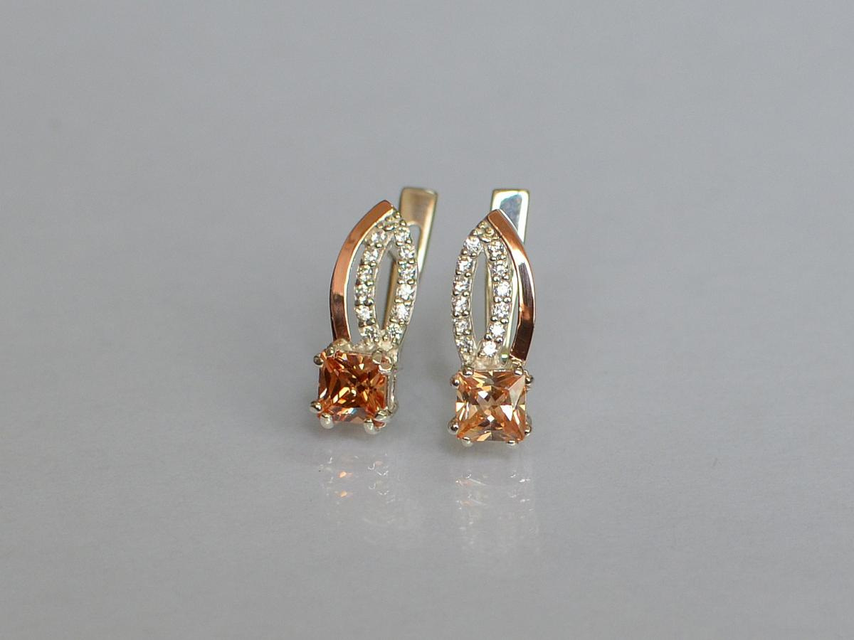 Серебряные серьги Sil с золотыми вставками 136s-15 Желтый (Sil-1249)
