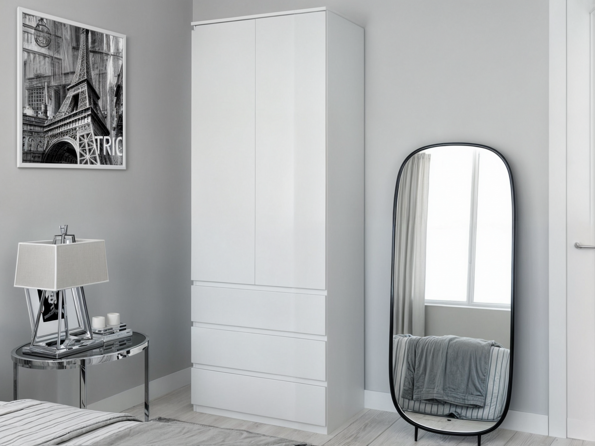 Шкаф распашной Tobi Sho T-211 со штангой и ящиками для детской комнаты, 800х2117х500 мм Белый