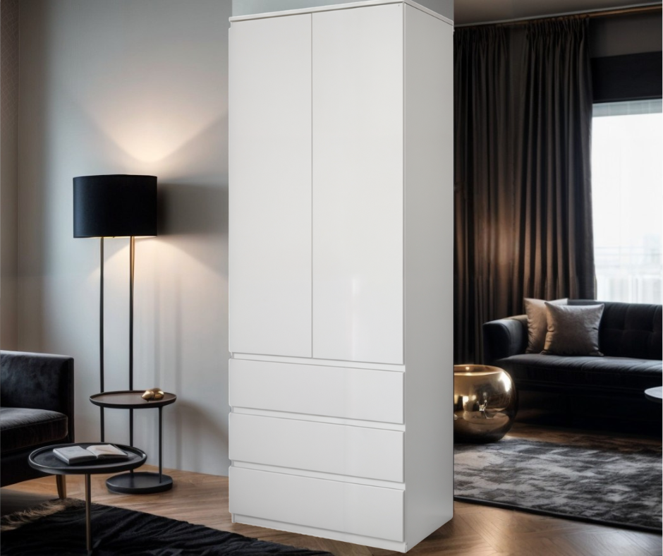 Шкаф для одежды Tobi Sho T-210 распашной с полками и выдвижными ящиками, 800х2117х500 мм Белый/Антрацит