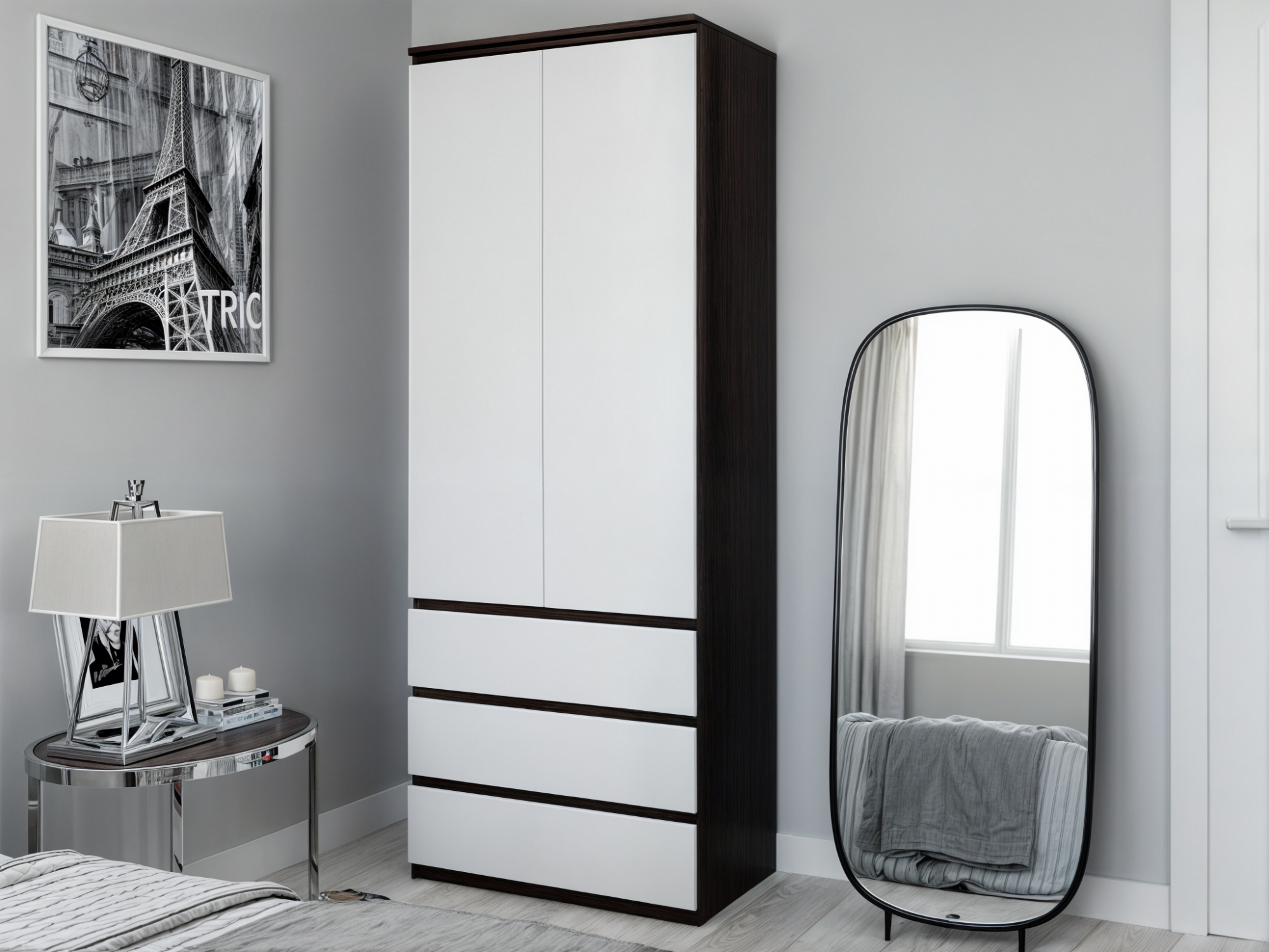 Шкаф для одежды Tobi Sho T-211 распашной со штангой и выдвижными ящиками, 800х2117х500 мм Венге/Белый