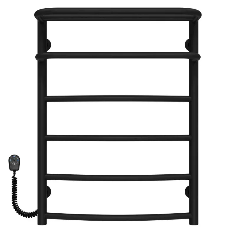 Полотенцесушитель водяной Deffi Трапеция с полкой П5 700х430мм, нержавеющая сталь, черный