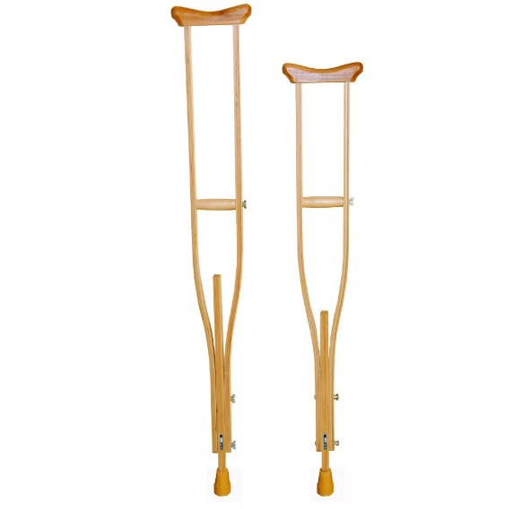 В деревянных костылях можно регулировать как высоту самого костыля, так и вертикальное положение "ручки", что дает возможность точно "подстроить" их для больного.