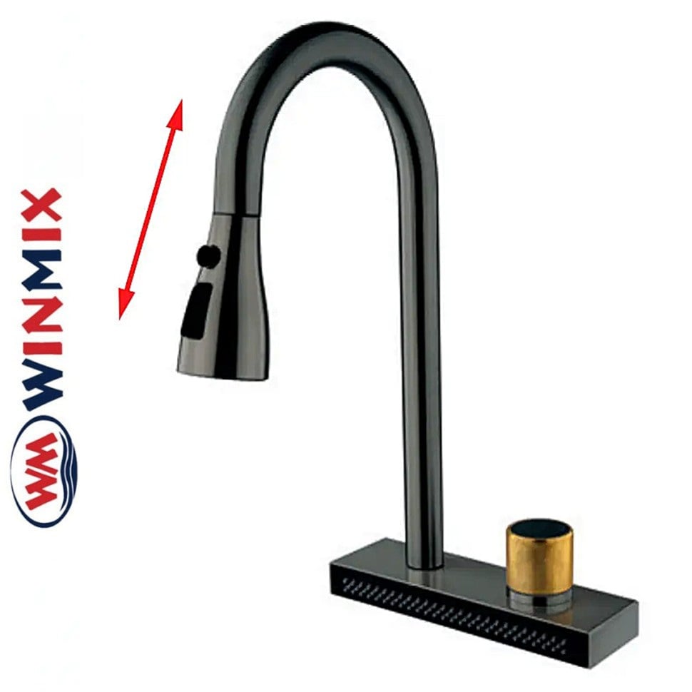 Змішувач для кухні FOL-014 GRAPHITE з матовим покриттям кольору Графіт, поворотним виливом та нижнім зливом-розпилювачем Водоспад – це стильне та функціональне рішення для вашої кухні. Цей змішувач має декілька зручних особливостей, таких як: