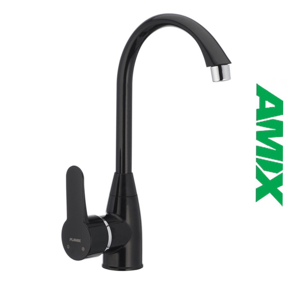 Одноважільний змішувач для кухні Mario - 011 чорний виготовлений з термопластику і має ряд переваг: не схильний до дії корозії, має стійкість до солі, лугу та кислот, в процесі експлуатації не темніє, не змінює колір і легко чиститься. Під час виробництва використовуються екологічно чисті матеріали. Змішувач складається із стандартних деталей, які у разі чого можна замінити. Монтується під один отвір (мийка, стільниця, підвіконня) на гайку. Вилив поворотний. Замковий елемент – керамічний картридж. У комплект постачання не входить гнучка підводка.
