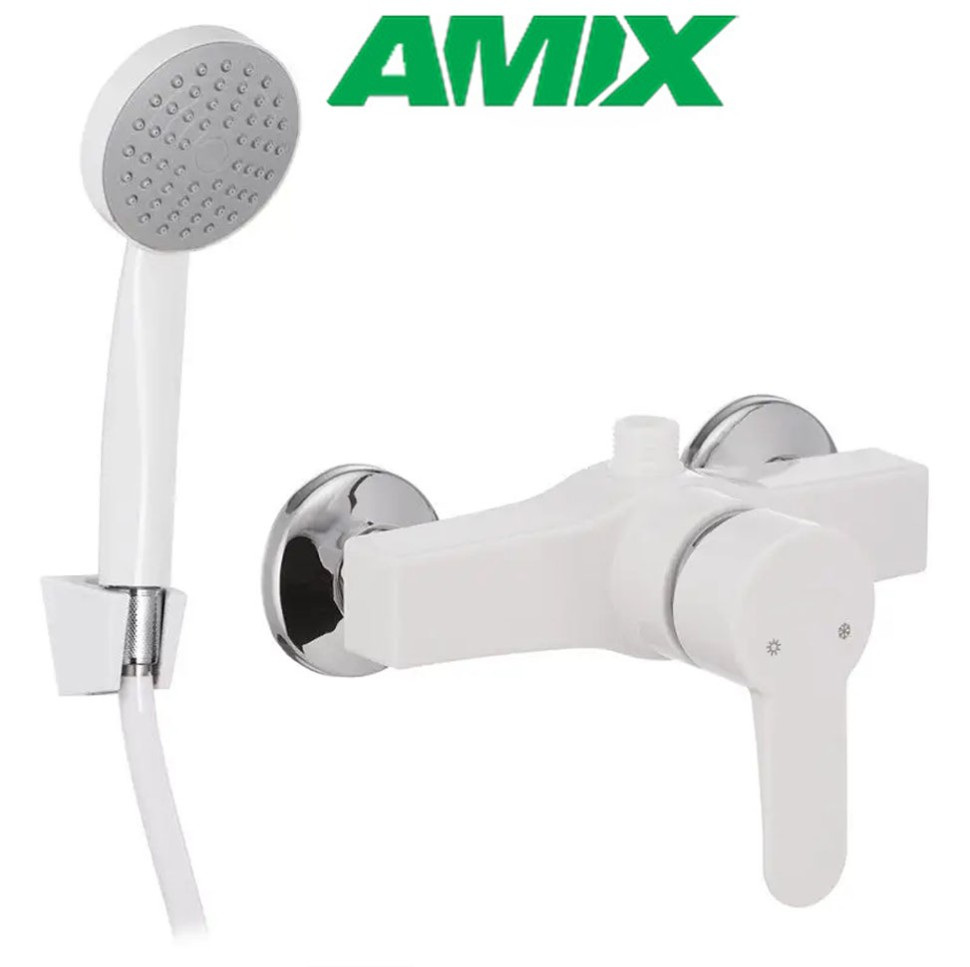 Описание Смеситель для душевой кабины AMIX CEZAR-003 SET White (со шлангом, лейки и кронштейном), Белый