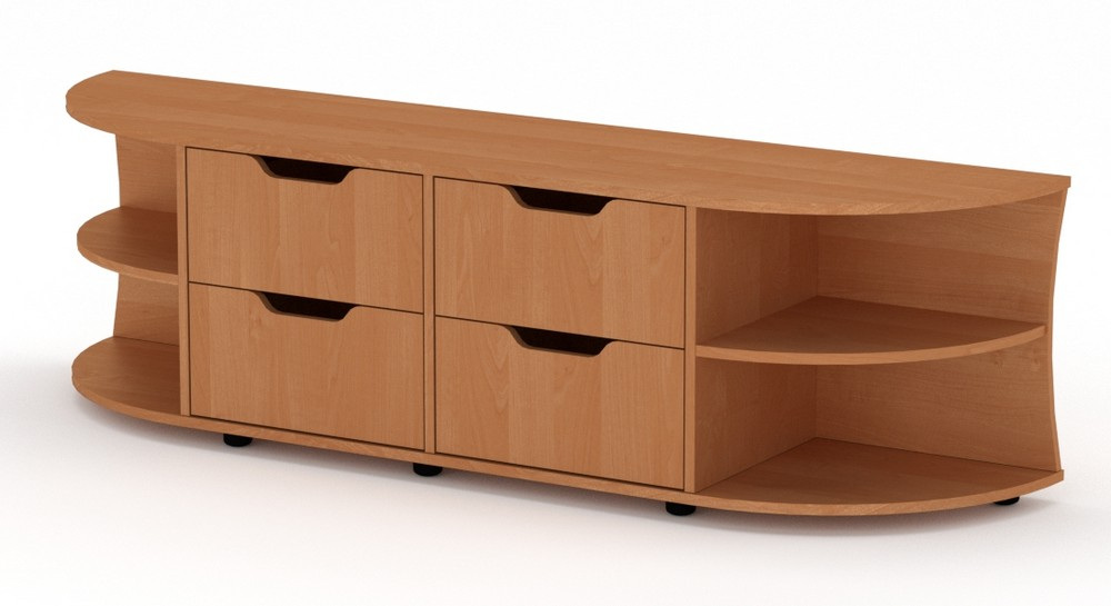 Тумба под ТВ Одесса изготовлена из ламинированного ДСП толщиной 16 мм. Открытая тумба под телевизор, оснащенная полочками для видеоаппаратуры и четырьмя выдвижными ящиками в центральной части, которые лекго вместят большое колличество необходимых вещей. Такая тумба станет прекрасным дополнением интерьера благодаря своему стильному дизайну.