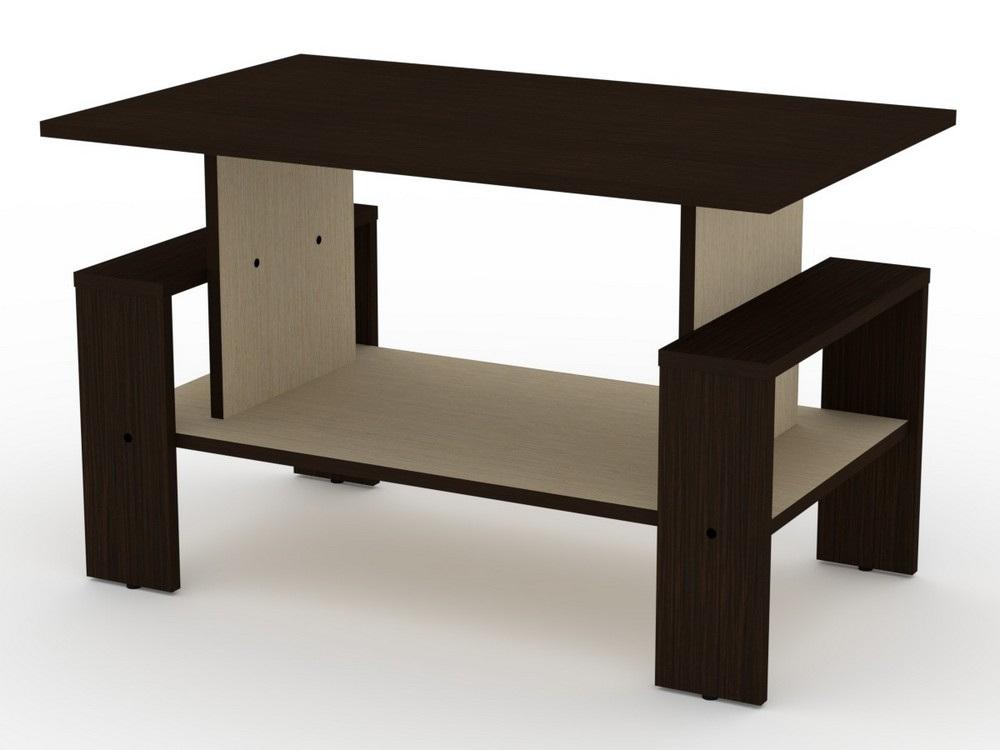 Стол журнальный изготовлен из ламинированного ДСП, толщиной 16 мм, кромка ПВХ 0,5 мм. Современная комбинация цветов позволит создать любой интерьер Вашей комнаты. Оригинальный дизайн стола дополнит любой интерьер, а дополнительные полки помогут разместить предметы декора и гаджеты.