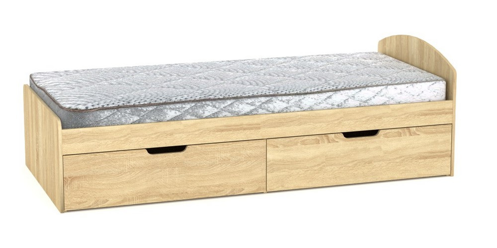 Описание Односпальная кровать с ящиками Компанит-90+2 дуб сонома