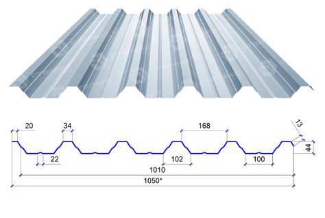 Описание Сталекс Профнастил ПН-44 0,40 PE RAL 9006 Китай (Эконом)