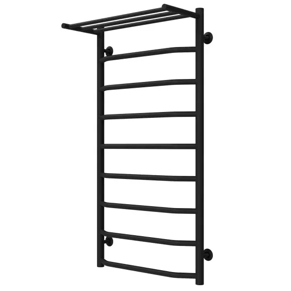 Полотенцесушитель водяной Deffi Трапеция с полкой П9 1000х530мм, нержавеющая сталь, черный